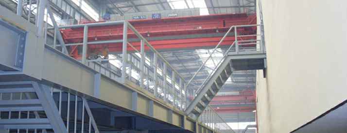 本工程轴线总长228米,轴线总宽132.5米。共四连跨,跨度36米,大柱距18米、小柱距12米,厂房高度高45.85米,四跨均设行车,大行车350T。墙面为C型钢镀锌墙梁,墙板为单层HV-248型彩板,屋面为轻质太空屋面板并做卷材防水,屋面均设通风器。